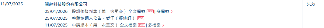 据招股书,该公司是一家全球领先的无晶圆厂集成电路设计公司,专注于为云计算及AI基础设施提供创新、可靠且高效能的互连解决方案。该公司向行 业领先的客户提供互连类芯片,包括内存互连芯片及PCIe(PeripheralComponentInterconnectExpress)/CXL(ComputeExpressLink)互连芯片,应用场景涵盖 包括数据中心、服务器及计算机在内的广泛终端领域。根据弗若斯特沙利文的资料,按收入计算,该公司于2024年位居全球最大的内存互连芯片供应 商,市场份额达36.8%。 澜起科技股份有限公司(简称:澜起科技,688008.SH)于2025年7月11日所递交的港股招股书满6个月,于2026年1月12日失效,递表时中金、摩根士丹利 及瑞银为其联席保荐人。 ...