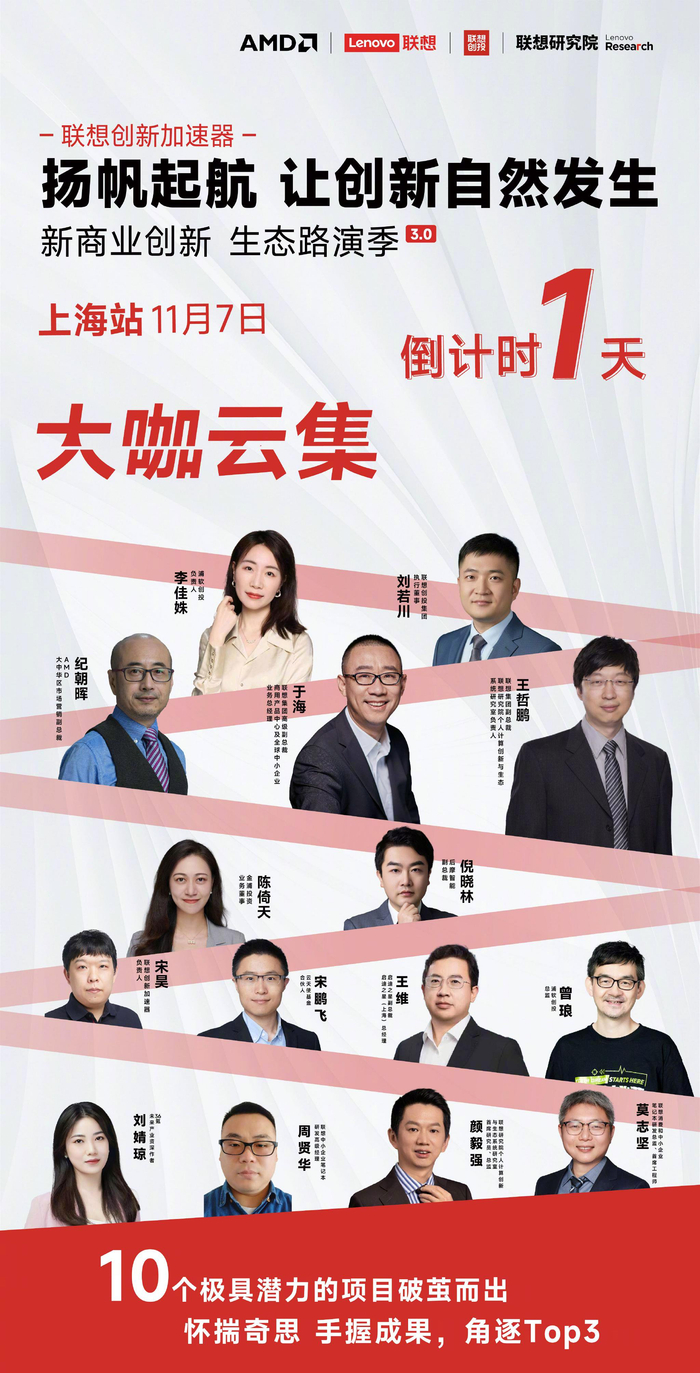 Group 1 - Lenovo, in collaboration with AMD and other partners, will unveil new AI ecosystem opportunities at an event in Shanghai on November 7 [1] - The event will feature discussions led by Lenovo executives and industry leaders on innovation [1] - Ten potential projects covering areas such as edge intelligence and chips will compete for the top three positions to win the "Lenovo Innovation Accelerator" full-chain ecological empowerment [1][4] Group 2 - The event aims to foster innovation and showcase the practical application of technology in the industry [1] - The competition highlights the emergence of promising projects that are ready to make an impact [4]