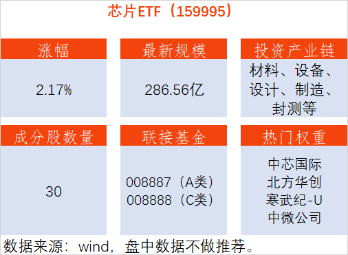 资料显示,芯片ETF(159995)跟踪国证芯片指数,30只成分股集合A股芯片产业中材料、设备、设 计、制造、封装和测试等龙头企业,其中包括中芯国际、寒武纪、长电科技、北方华创等。 10月9日,A股三大指数集体高开,上证指数开盘上涨0.4%,贵金属、基本金属、电脑硬件等板块涨幅 靠前,海运、软饮料跌幅居前。芯片科技股持续强势,开盘来看,芯片ETF(159995)上涨2.17%,其 成分股通富微电上涨10.01%,澜起科技上涨4.65%,北京君正上涨4.48%,兆易创新上涨4.08%,海光信 息上涨3.72%。 (文章来源:每日经济新闻) 10月6日,OpenAI与AMD宣布签署价值数百亿美元的芯片交易。根据协议,OpenAI和AMD将共同开发 基于AMD处理器的AI数据中心。 华鑫证券表示,国产AI芯片大时代已经来临,国产AI产业链从上游先进制程到先进封装,到下游字节 阿里腾讯的模型加速迭代升级已经实现全产业链打通,我们坚定看好国产AI算力设施的加速突破。 ...