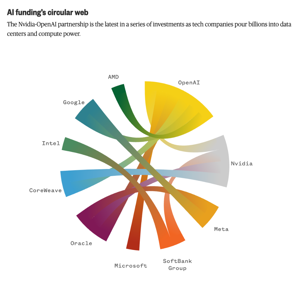 通过扩张"交叉持股"网络,OpenAI正将自身与整个AI产业链"深度绑定"。 近日,英国《金融时报》旗舰投资专栏负责人John Foley撰文称,Sam Altman正在构建的似乎不仅是一家AI公司,更是一个通过相互依赖和持股关 系深度绑定的企业帝国。通过将关键供应商转变为利益共同体,OpenAI正将自身的成功与整个AI产业链的命运牢牢锁定在一起。 最新的一步棋,是OpenAI与芯片制造商AMD达成的一项意义深远的协议。根据周一披露的交易,这笔合作看起来与OpenAI上月同英伟达达成的 交易如出一辙,本质上都是一份长期客户承诺:OpenAI承诺大批量采购高端芯片,而芯片制造商则获得稳定的未来收入保障。 并且,AMD还向OpenAI提供了认股权证,使后者有权获得前者10%的股份。消息一出,AMD的市值在几分钟内飙升超过800亿美元,市场用真金 白银对Altman这种"捆绑"战略投出了信任票,也预示着一个以OpenAI为核心的新型"AI财阀"正初现雏形。 通过"芯片联姻",打造庞大的"AI利益共同体" 文章强调,OpenAI与两大AI芯片竞争对手的结盟,是其帝国版图的关键一环。这两笔交易的核心都是以OpenAI巨 ...