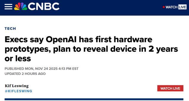 奥特曼:OpenAI首款 AI 硬件原型已落地,两年内将投产