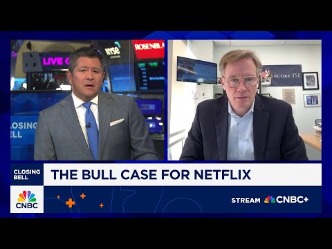 He sees another 20% upside from here. Joining us this afternoon, Mark Mahaney, Evercore ISS head of internet research. Mark, good to see you again on Netflix.I know you've done some some survey work. Uh you've got some stuff to talk about about sentiment. Does it deserve to have treaded water really since Memorial Day or so.>> Oh, I uh Well, that's a good take on it. Uh I was looking at the stock that's up 36% year to date and kind of patting myself on the back, but you're right. Uh the stock has uh there w ...