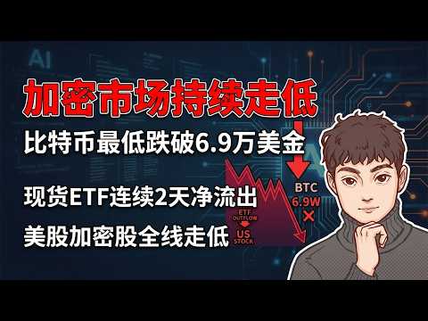 加密市场持续走低,比特币最低跌破6.9万美金,市场流动性下滑明显,现货etf连续出现2天净流出,美股加密股走低【Vic TALK第1602期】
