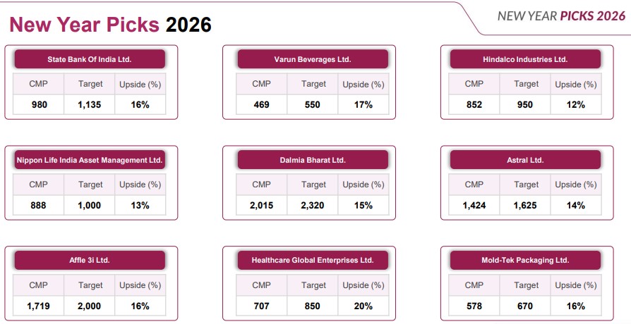 The year 2026 is expected to be more constructive for Indian equities, transitioning from a period of valuation-led consolidation to an earnings-led market Capturing India’s Next Growth PhaseSectoral Themes and New Year Picks 2026Our New Year Picks 2026 are therefore structured to identify companies and sectors best positioned to compound earnings over the next market cycle, leverage domestic growth drivers, and exhibit strong balance sheets and pricing power amid a volatile global environment. While near ...