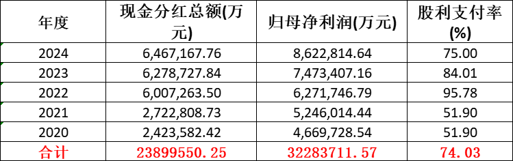 Core Viewpoint - Guizhou Moutai is taking significant actions post-leadership change, focusing on share buybacks and cash dividends to enhance investor confidence amid industry challenges [2][3]. Group 1: Share Buyback - Guizhou Moutai plans to repurchase shares using self-owned funds ranging from 1.5 billion to 3 billion yuan, with a maximum buyback price of 1887.63 yuan per share [3][4]. - As of September 30, 2025, the total assets of Guizhou Moutai are 304.738 billion yuan, with net assets attributable to shareholders at 257.070 billion yuan, and cash and cash equivalents at 159.502 billion yuan [4]. - If the maximum buyback amount of 3 billion yuan is fully utilized, it would represent approximately 0.98% of total assets, 1.17% of net assets, and 1.88% of cash and cash equivalents [4]. Group 2: Cash Dividends - Guizhou Moutai announced a cash dividend of 23.957 yuan per share (including tax), totaling approximately 30 billion yuan (including tax) based on the total shares as of September 30, 2025 [5]. - From 2020 to 2024, Guizhou Moutai's total cash dividends amounted to 238.996 billion yuan, accounting for 74% of the total net profit during the same period [5][6]. Group 3: Strategic Initiatives - The company aims to establish a new high-level shareholder return framework through regular cash dividends, share buybacks, and promoting major shareholder increases [6][7]. - Guizhou Moutai will adhere to a cash dividend plan for 2024-2026, maintaining a biannual dividend rhythm while optimizing strategies based on performance and cash flow [7]. - The company is committed to balancing stability and adaptability in response to the evolving white liquor market, focusing on high-quality marketing and sustainable development practices [7].