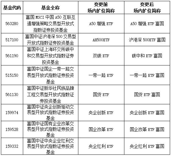 标识统一易辨识富国基金旗下首批8只ETF变更场内简称