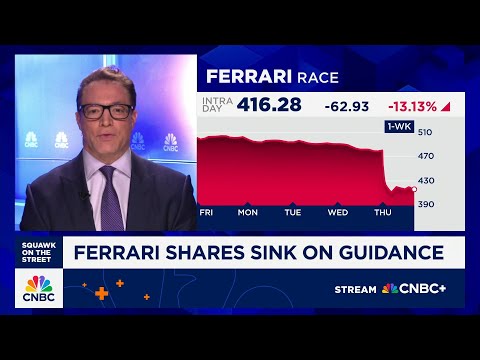Shares of Ferrari down double digits after disappointing long-term guidance. Let's get to Robert Frank with some of these numbers and what they're saying about the EV market among other things. Robert.>> Yeah, Carl. Good morning. Ferrari shares down 13% on fears of a slowdown in profits at its big investor day today.The company raising its short-term guidance, but it lowered its long-term projections. And that's what's really got investors concerned here. Analysts had been expecting EBITDA growth of about 1 ...
