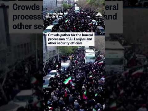 Crowds gather for the funeral procession of Ali Larijani and other security officials