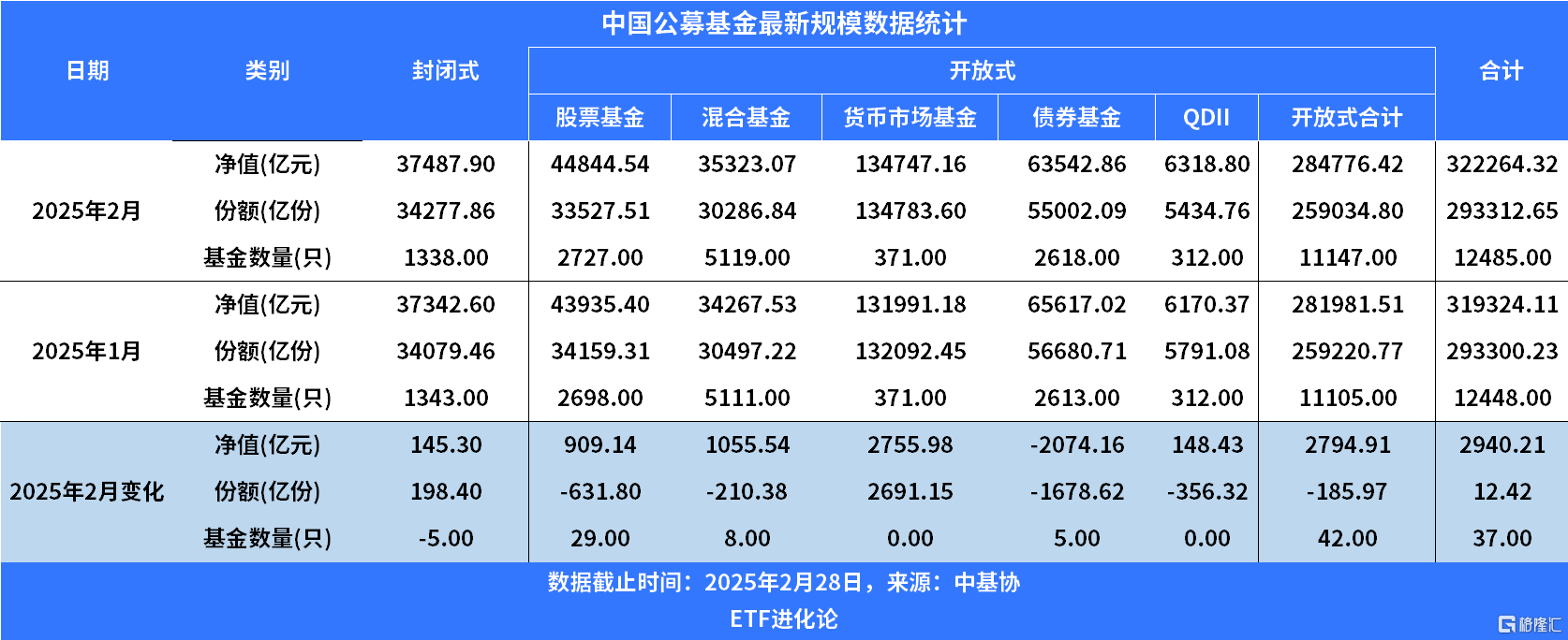 2月公募规模重回32万亿元,除了货基,股票基金、混合基金、债券基金、QDII基金份额全部缩水!