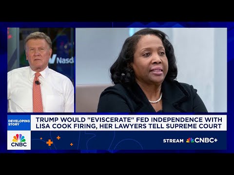 Trainers attorneys for Fed Governor Lisa Cook are arguing the Supreme Court should reject President Trump's push to fire her as a lawsuit plays out challenging her attempted removal. Cook's lawyers say if the court grants Trump's request, it would, in their words, eviscerate the independence of the Federal Reserve Board. Earlier today, a group that includes every living former Federal Reserve chair along with a number of former Treasury Secretary Saries also uh urged the Supreme Court to deny President Trum ...