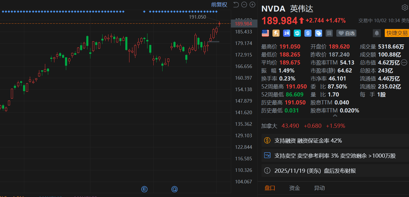 美股异动丨英伟达涨2%创历史新高 花旗升其目标价至210美元