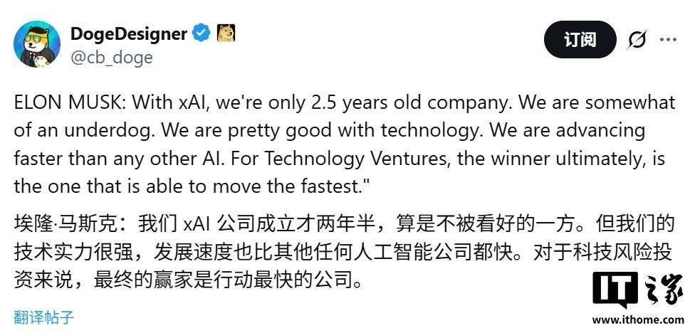 Core Insights - xAI plans to delay the launch of its Grok 5 model to 2026, which will feature 6 trillion parameters, double the size of its predecessors Grok 3 and Grok 4 [1][2] - Elon Musk expressed strong confidence in Grok 5's capabilities, claiming it will outperform other AI models, including OpenAI's GPT-5 [1] - The delay is attributed to resource limitations and stringent testing requirements necessary to ensure the model's safety and reliability [2] Group 1 - The Grok 5 model is expected to require significant computational power for training and optimization, which has contributed to the delay [2] - The postponement allows competitors like OpenAI and Google to strengthen their market positions [2] - xAI's strategic pause may aim to ensure Grok 5 delivers disruptive innovation upon release [3] Group 2 - xAI faces pressure from investors and partners due to its high monthly expenditures of up to $1 billion, which may be exacerbated by the delay [3] - The development of complex AI models often exceeds initial expectations, necessitating extended timelines [2] - Ensuring the model's capability to autonomously execute multi-step tasks requires thorough safety checks and alignment testing [2]