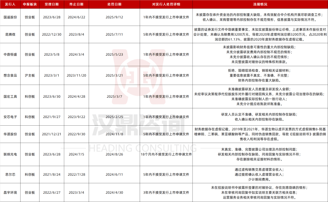 1-5年内不接受IPO申报!全面注册制以来10家企业被“资格罚”,存在哪些典型违规事项?