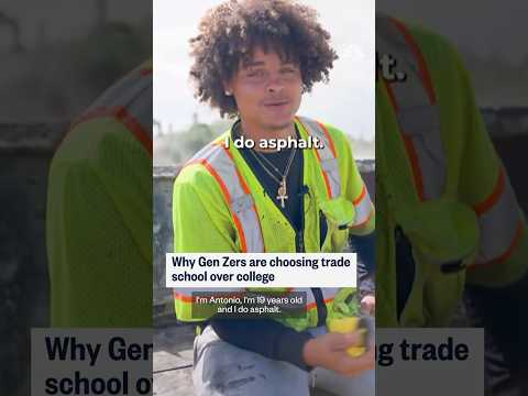 You don't have to go to college to be successful. >> I'm Antonio. I'm 19 years old.I do asphalt. >> A career in skilled trade jobs is becoming a hit amongst the unlikeliest demo. Gen Z.Four and 10 Gen Z workers say they're turning to bluecollar work for job security. >> I feel like trades are such a, you know, even playing field. As long as you know what you're doing, you have the experience, and you have the ambition, you could really go anywhere in this trade.18 to 28-year-old electricians, plumbers, HVAC ...