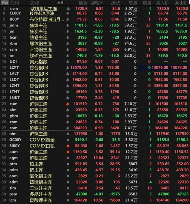 金属近全线飘红 沪银涨近13% 碳酸锂涨超10% 伦锡涨逾3%