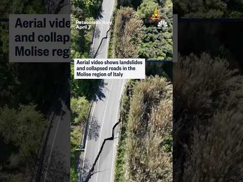 Aerial video shows landslides and collapsed roads in the Molise region of Italy