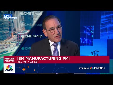 First though getting some ISM manufacturing numbers. Let's get back to Rick Santelli. Hi again Rick. >> Hi Carl.Indeed these are October read for ISM. Uh for the manufacturing side there is no bid month read on the headline manufacturing expecting a number close but below 50 49 and change ends up coming in light. 48.7% that equals where we were in August to find a lower number here going to July.We haven't had a positive number there since the first couple months of the year, January and February, meaning o ...