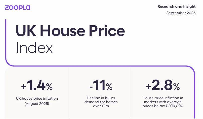 2025年9月 英国房价指数报告:平均房价27万英镑,年增值仅1.4%