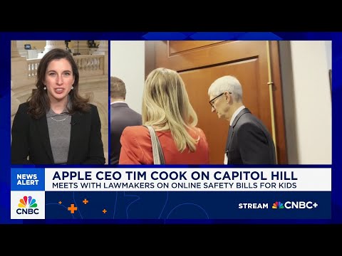 All right. So, one minute you find Jensen Wong wandering around down there and you've got the microphone in his face and today somebody equally as interesting. >> Apple's Tim Cook.He was on the Hill today. Uh we did ask him a couple questions. Now, we did not hear directly uh from Tim Cook himself.Decided to be a bit of a man of mystery today, but we did know that he has met with lawmakers about a package of bills that are going to get their initial votes in a congressional panel tomorrow. And these deal wi ...