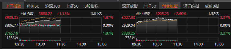 星石投资认为,短期市场或表现震荡休整,后续大幅下行的概率较小。由于年底缺少新的催化,场外资 金或以观望为主,存量资金博弈可能继续,市场主线阶段性缺失,板块轮动或保持较快,市场结构处于 再平衡状态。从中长期视角看,历史上牛市中大多会出现回调,估值回落是当前市场回调的主要原因, 考虑到明年将进入业绩兑现期,估值因素将逐渐让位于基本面驱动,A股市场仍处于"慢牛"阶段中。 盘面上看,有色、医药、半导体、化工、银行、保险等板块走强,CPO概念、PCB概念、消费电子概念 等活跃。 25日,两市股指盘中强势上扬,沪指一度涨超1%,创业板指盘中涨超3%,场内约4300股飘红。 截至收盘,沪指涨0.87%报3870.02点,深证成指涨1.53%报12777.31点,创业板指涨1.77%报2980.93点, 沪深北三市合计成交18264亿元。 (文章来源:证券时报网) ...