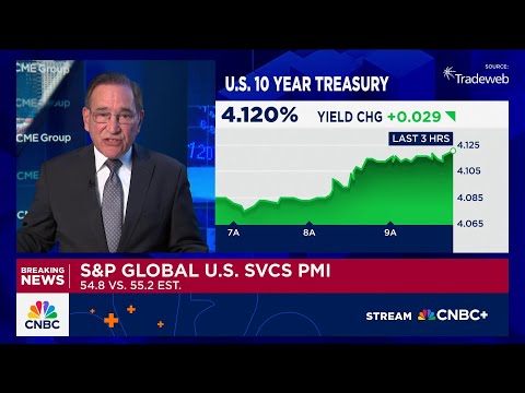 services PMIs as well with Rick Santel. Hey Rick. >> Hi Carl.Indeed. Rates are moving up, but maybe it's outside of the data I'm about to release. Our October final read on service sector and composite from S&P Global comes in less than expectations and less than the midmon read.54.8% replaces 55.2%. And if you look at the composite, 54.6% replaces 54.8%. But here's the rub.Even though they're less than expected and less than the midmon read, they're still sequentially higher than last month, which is the c ...