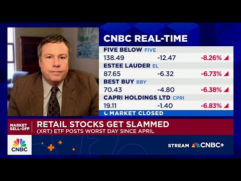 Retail, one of the sectors worst slam today on tough talk from President Trump on China tariffs. The XRT ETF posting its worst day since May, worst week of the year. Some of the hardest hit names, Five Below, Estee Lauder, Best Buy, and Capri.Let's bring in Oenheimer senior analyst Brian Nagel. And Brian, you you had been saying tariff driven price hikes were moderating. How much of a concern is this uh latest dust up.>> Well, good afternoon. Now, that's interesting. So, you're referring to uh just this mor ...