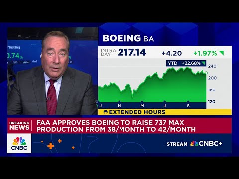 Production & Approval - FAA approves Boeing's request to increase 737 Max monthly production from 38 to 42 [1] - FAA conducted extensive reviews of Boeing's production lines to ensure safety for the rate increase [1] - FAA will continue to monitor Boeing's production [1] - Boeing may need further FAA approval to increase production to 47 per month [1] Financial Implications - Increased production drives deliveries and free cash flow [3] - Boeing anticipates positive free cash flow this quarter, partly due to increased production [3] Production Goals & Timeline - Boeing's goal has been to reach a production rate of 42 per month by the end of the year [4] - Initial expectations were to reach 42 per month in Q3, but the timeline shifted to Q4 [4][6] - Boeing is focused on ensuring FAA approval and avoiding rushing the production increase [4] Monitoring & Quality - FAA receives daily data from Boeing regarding the manufacturing process [5] - FAA reviewed six key performance indicators and determined Boeing could consistently achieve the increased rate [5][6] - Boeing emphasizes a disciplined rate readiness process guided by its safety management system [1][2] - Maintaining quality and managing the supply chain are key concerns for sustaining the increased production rate [6]
