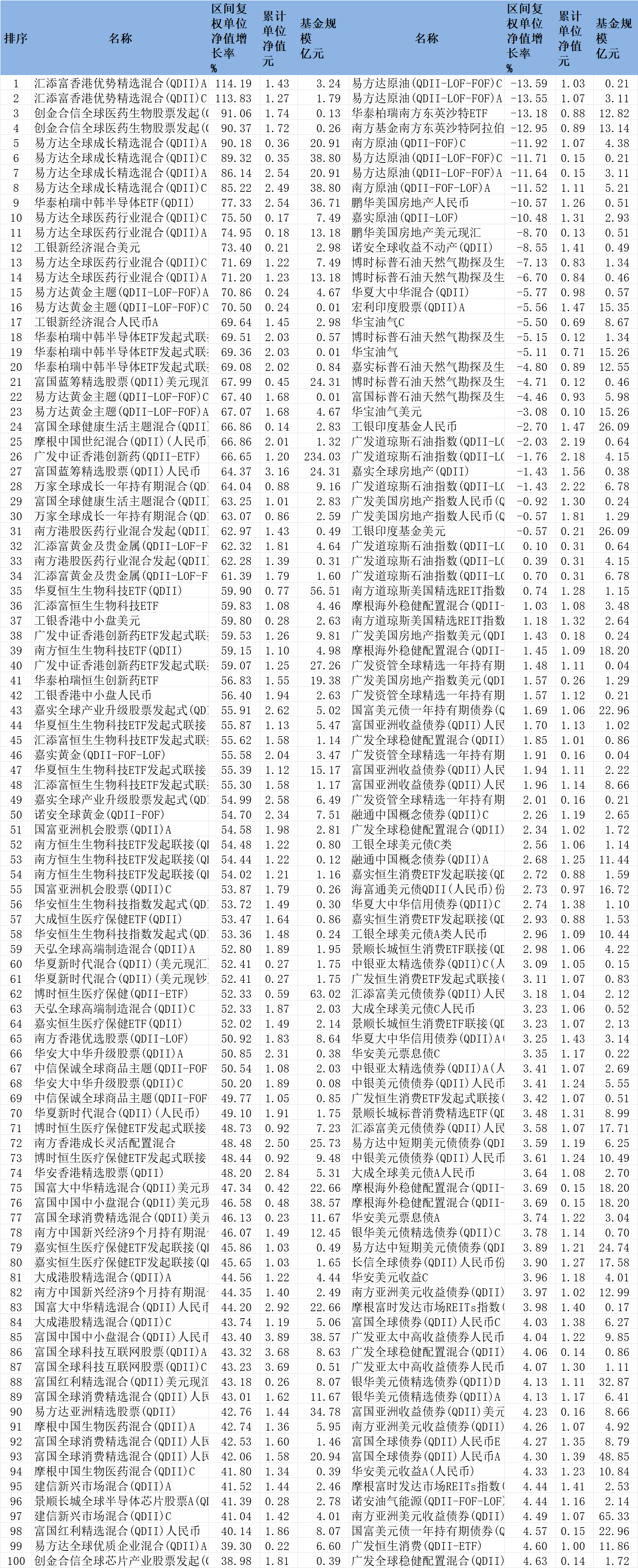 同时,还有6只QDII基金去年涨幅超过80%,其中易方达基金管理有限公司旗下产品占4只,分别为易方达全球成长精选混合(QDII)C(人民币份额)、易 方达全球成长精选混合(QDII)A(人民币份额)、易方达全球成长精选混合(QDII)C(美元现汇份额)、易方达全球成长精选混合(QDII)A(美元现汇份额),均涨超 85%。 截至去年三季度末,上述4只基金前十大重仓股分别为台积电、英伟达、谷歌、博通、天弘科技、阿里巴巴、美光科技、欣旺达、聚辰股份、澜起科 技。 中国经济网北京1月12日讯(记者 何潇) 2025年收官,全市场650只(各类份额分开计算,下同)有可比业绩的QDII基金中,有619只基金净值上涨, 占比95.2%,有31只基金净值下跌。 2025年,汇添富香港优势精选混合(QDII)A/C业绩表现优异,其涨幅为114.19%、113.83%。去年三季报显示,汇添富香港优势精选混合A/C坚守投资主 线、沿着以下方向布局:1)创新药:产品有全球竞争力和成长空间的pharma和biotech;2)进口替代率低,壁垒高的优秀设备耗材龙头。 截至去年三季度末,汇添富香港优势精选混合A/C前十大重仓股分别为映恩 ...