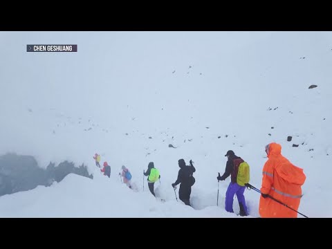 A shock blizzard and an allout race to reach hikers stranded on the Tibet side of Mount Everest. Chinese rescue teams and villagers using horses, yaks, and drones at 16,000 ft. Videos on Chinese social media showing guides and campers digging around their tents to avoid being buried.Hiker Chen Gushwang told us it was a nerve-wracking night of lightning strikes and strong winds. Lines of treers seen walking in deep snow to get off the mountain. Extreme weather also pounding the other side of Mount Everest in ...