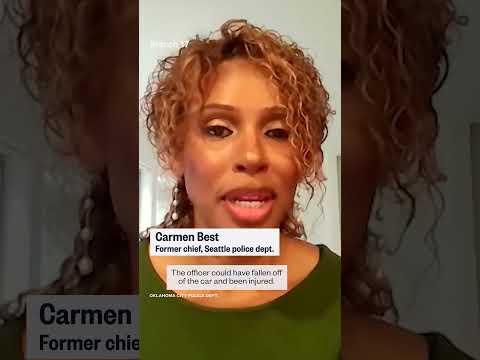 Watch as this officer climbs onto the hood of a car and hangs on, directing the citizen driver to hit the gas. >> Go, go, go, go, go. Drive.>> The person they were pursuing, a 17-year-old boy who the police say was operating a minibike without headlights, creating a significant safety concern for motorists. Carmen Best is a former Seattle police chief. >> Well, a whole host of things could have gone wrong.The officer could have fallen off of the car and been injured. A bystander could have been injured beca ...