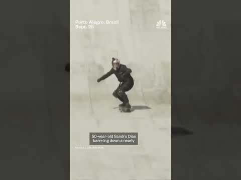 and Brazilian skateboarder defying gravity and shattering records skating down a 22-story building. Check this out. 50-year-old Sandro Dash barreling down a nearly 230 foot ramp on the side of the building reaching speeds of up to 64 miles per hour.The stunt breaking two Guinness World Records for tallest drop in and fastest speed on a skateboard on a temporary quarter pipe. ...