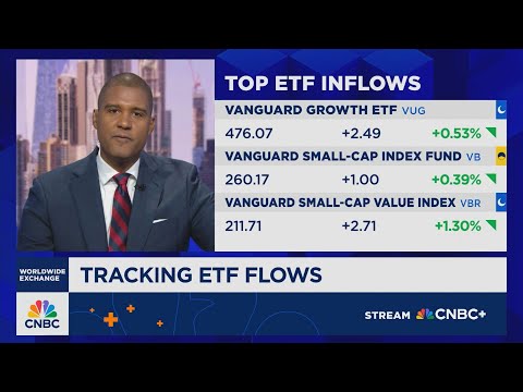 We're tracking ETF flows that are now over $855 billion year to date. We're also tracking the moves above and below the 30-day moving averages for the popular index funds, the SPY and the triple Q's buying, we're going to show you in a second, surged at the end of the week. This week, the Vanguard Growth Index Fund ETF ticker Bug that focuses on large cap stocks, saw the top inflows, followed by the Vanguard Small Cap Fund, ticker VB, and the the VBR, Vanguard Small Cap Value ETF.Of course, small caps hit a ...