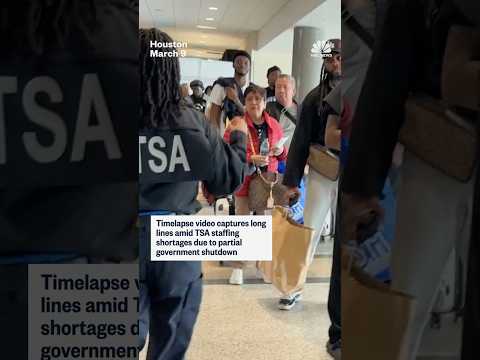 Timelapse video captures long lines amid TSA staffing shortages due to partial government shutdown