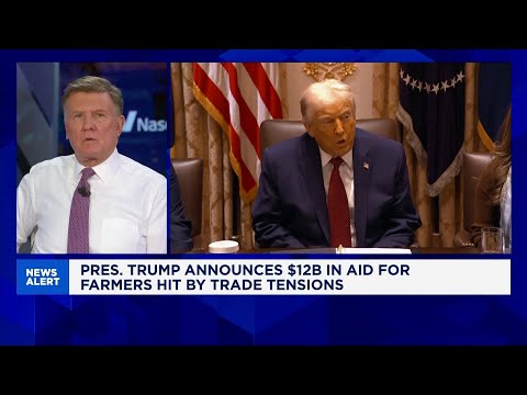 President Trump announcing uh the White House will provide 12 billion dollars in aid to farmers impacted by global uh trade tensions. During a r roundt event uh in Washington, the president said that the funds would come from tariff revenues. Most of the money will go toward providing one-time payments to row crop farmers.the rest will go towards specialty crops. There's a certain symmetry here, I think, because it's the tariffs that really cause some of the backlash from other countries to not buy our soyb ...