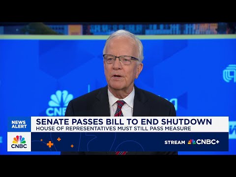 Senate passing a bill to fund the federal government uh through January. The measure will now need uh to pass in the House and then head to President Trump for a signature to end the 42 day shutdown. Probably be talking about 43 and maybe 44, I don't know.Join us now, Senator Jerry Moran of Kansas. He's chair of the Veterans Affairs Committee. Uh he will honor Veterans Day uh by ringing the opening bell uh here at the NASDAQ later this morning.Welcome. and and hence you here you are joining us on set. Senat ...