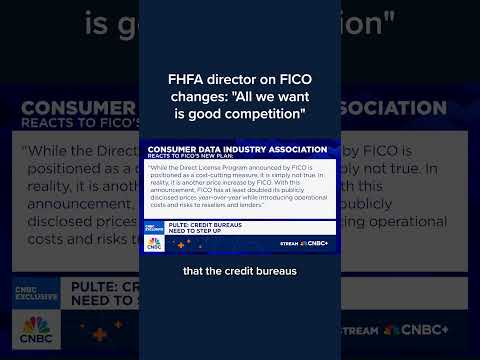 The Consumer Data Industry Association says the new FICO program could add at least $99 to the cost of a typical mortgage. Do you dispute that. >> Yeah, I don't think that that's accurate.I think they also said something positive, so I'm not exactly sure. I haven't seen that exact statement. I do think it will lower cost, but I think most importantly, the leading indicator for lowering cost is competition.And now you're going to have, you know, a lot of people used to say that the credit bureaus and FICO we ...