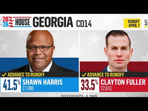 Some breaking news to get to right now in the Georgia special election to fill Marjorie Taylor Green's former seat. With just over 50% of the vote in, NBC News can now project that the race for the 14th district will head to a runoff between Republican candidate Klay Fuller, who was endorsed by President Trump and Democrat Shawn Harris, who lost the Green in 2024. That runoff is set for April 7th.Now remember, Green resigned late last year after breaking with President Trump over several issues, including h ...