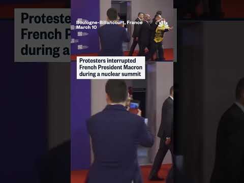 Protesters interrupted French President Macron during a nuclear summit