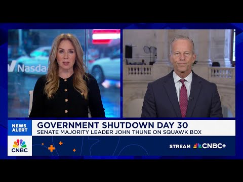 Senate Majority Leader Sen. John Thune (R-S.D.) joins 'Squawk Box' to discuss the latest developments in the ongoing government shutdown, takeaways from President Trump's meeting with Chinese President Xi, the resumption of nuclear testing, and more. ...