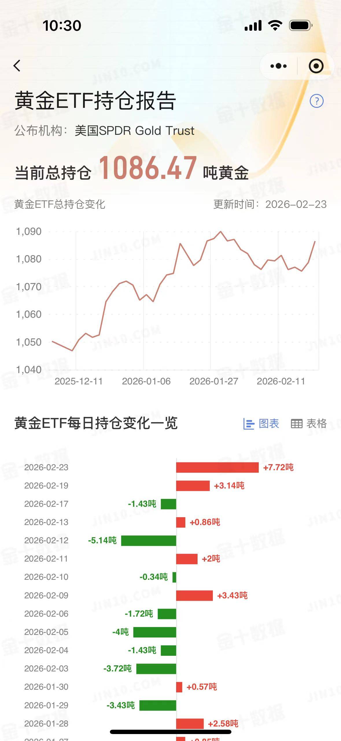 黄金ETF持仓量报告解读(2026-2-24)关税风波地缘政治 支撑金价