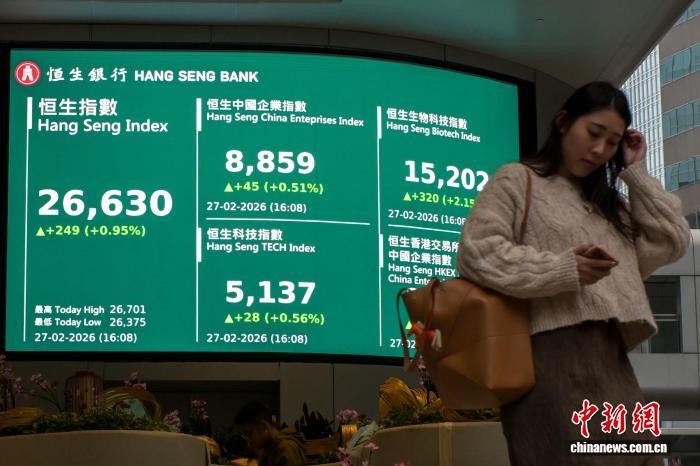 (机遇香港)港交所今年来新受理IPO申请177宗 香港特区政府财经事务及库务局局长许正宇26日表示,当前香港股市持续向好,市场总市值已升至50万 亿港元,新股上市活跃度提升,资金持续流入并带动资产及财富管理行业发展。 广告等商务合作,请点击这里 中新社香港2月27日电 (记者 戴小橦)港股市场2月行情27日正式收官,截至当日收盘,三大指数集体收 涨,恒生指数报26630.54点,上涨249.52点,涨0.95%,恒生科技指数涨0.56%,国企指数涨0.51%。 2月27日,香港恒生指数收市报26630.54点,上涨249.52点,升幅为0.95%,全日成交金额为2884.2亿港 元。 中新社记者 陈永诺 摄 当日,香港交易及结算所有限公司(简称"港交所")公布,截至2月27日,港交所今年以来新增上市公司 24家;2026年以来,港交所新受理首次公开招股(IPO)申请共计177宗。 板块方面,27日市场呈现结构性行情。科网股多数上涨,商汤涨4.92%,网易涨2.4%,腾讯控股涨 1.17%,美团涨0.87%,百度集团涨0.24%。煤炭股走高,中国秦发涨8.09%,中煤能源涨6.82%,兖矿能 源涨4.09%,首 ...