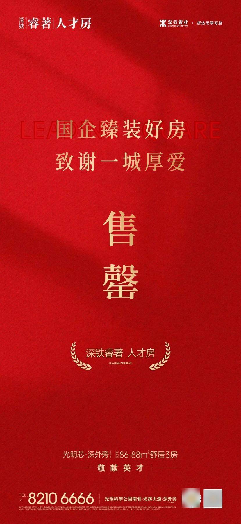 深圳房地产市场延续新年"开门红"态势。继1月底深铁铭著坊项目安居房"日光"后,2月7日,深铁睿著可售人才房在选房当日售罄,申购比高达1:11,深圳 再迎"日光盘"。 在家门口上学、乘车、购物,打造"一刻钟"高质量生活圈 值得关注的是,深铁睿著的热销并非孤例,而是延续了深铁TOD项目的热销表现。从此前阅云境"三开三罄"、璟城人才房三房户型"双开双罄",到尊府 的"五开五捷",由深铁TOD模式打造的"好房子"已形成市场号召力,持续获得市民高度认可。 申购比飙至1:11,TOD模式成"硬通货" 深铁睿著人才房位于光明区新湖街道光辉大道与华夏路交会处。此次提供房源32套,合格申购家庭为355户,房源与合格家庭的申购比高达1:11。 "选房从早上10点开始,但8点多不到就有市民前来等候",深铁置业现场工作人员介绍,选房开始后仅半小时,所有房源便告售罄,去化速度非常快速。 此 次推出的32套人才房全部分布在项目1栋一单元,为建面约86-88平方米的三房户型,配售均价为约25500元/平方米(按建筑面积计算,毛坯交付)。 首位选到心仪房源的肖女士是中国科学院深圳先进脑科学研究所的副研究员,她表示,深铁睿著的TOD模式将彻底 ...
