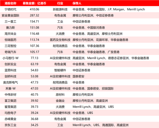 来源:智通财经 2025年,港股红遍全世界,以374亿美元的IPO集资规模一举问鼎全球榜首!这一震撼业界的数字,同 比狂飙231%,既创下2021年以来的巅峰纪录,更以碾压之势超越此前三年总和,尽显王者雄风! 细分赛道中,按IPO及再融资计,TMT行业凭345亿美元发行规模领跑全场、独领风骚;医疗保健与生 物科技板块同样锋芒毕露,156亿美元的发行规模惊艳市场,其中生物科技业更独占鳌头,62亿美元集 资额彰显硬核实力! 迈入2026年,港股IPO市场热度狂骉、气势更盛,活跃度飙升至新高度!截至2月上旬,超400家企业已 列队轮候上市,其中超50家企业剑指《上市规则》第十八A章(生物科技)、十八C章(特专科技)及 八A章通道,蓄势待发、箭在弦上!一场席卷资本圈的全新盛宴,已然拉开序幕,续写港股辉煌新篇 章! 让我们先看看2025年港股IPO募集金额前二十名上市公司榜:宁德时代、紫金黄金国际、三一重工排名 前三,行业主要以新能源科技,AI及软硬件科技,医药及生物科技,有色金属,大消费为主。 | 港股名称 | 募集金额:亿港币 | 往不 | 保存人 | | --- | --- | --- | --- | | 宁德时 ...