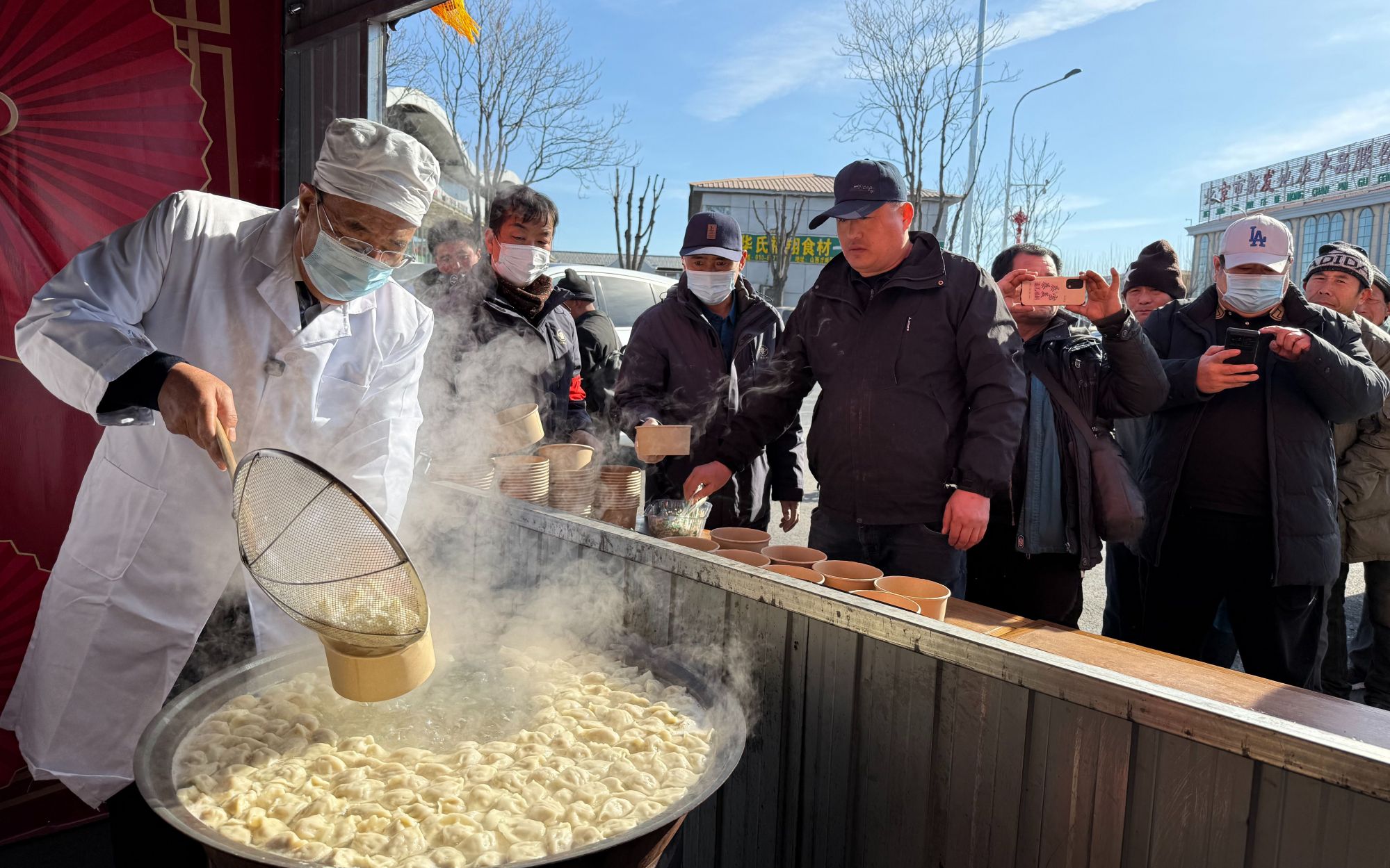 北京新发地爱心饺子除夕开煮,10吨水饺现场慰问留守商户