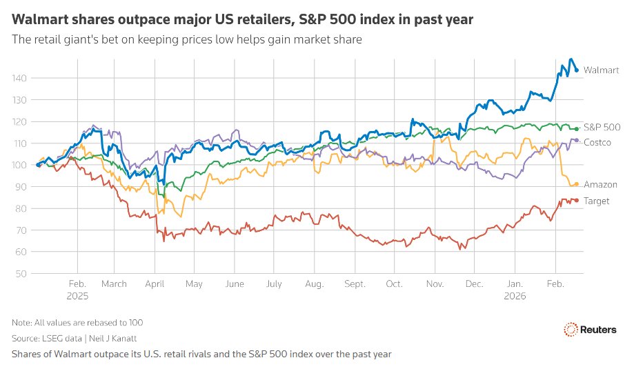 沃尔玛(WMT.US)2027财年指引“泼冷水”:营收利润双逊预期 贸易与劳动力压力成主因