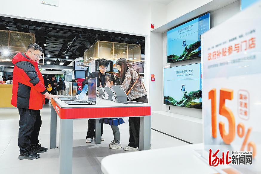 (来源:河北新闻网) 转自:河北新闻网 "以旧换新"发力 "乐购新春"加力 河北春节消费市场红红火火 2月17日,廊坊水云间文化商街云锦广场,消费者在选购笔记本电脑。 河北日报记者 王伟摄 马年春节,河北消费市场红红火火。商场超市货丰价稳,保障民生需求;餐馆市集烟火升腾,传递团圆温暖;以旧换新政策 持续发力,拉动新春消费;多元消费场景推陈出新,丰富节日体验。消费者在浓浓年味中,尽享购物便利与喜悦。 从河北省商务厅获悉,假日期间,河北省各地谋划组织开展"乐购新春"促消费活动370余场,为消费者送上了真金白银的新 春礼包,全省消费品市场呈现年味浓、人气旺、销售热的良好态势。监测数据显示,2月15日至17日,全省重点监测的178家 零售企业实现销售总额10.6亿元,较去年春节假期前三天增长25.6%。 政策叠加释放消费潜力 春节到了,民生红包也准时送达。 2月18日,家住石家庄市桥西区的张先生来到北国商城海尔冰箱专柜,为父母选购新冰箱。他选中一款原价6799元的冰箱, 经厂家和商场补贴后价格为4100元,再叠加15%的以旧换新补贴,最终到手价仅3485元。张先生对这次购物体验赞不绝 口:"补贴政策全国统一,省去了比 ...