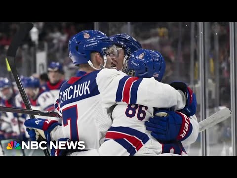 Okay, we're going to take a turn now to the Olympics where late today a victory for the US men's hockey team advanced them to Sunday's gold medal game. Molly Hunter is in Cortina. And Molly, the Americans really dominated today.Tom, that's right, completely dominated. It was so awesome to watch. Now, the US controlled the pace from the very beginning, taking the lead within the first five minutes, soundly beating Slovakia 6-2.Jack Hughes was responsible for two of those goals. And now the US will face arch ...