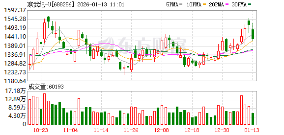 (文章来源:每日经济新闻) 每经AI快讯,1月13日,A股寒武纪盘中跌超5%,现报1434.23元。 ...
