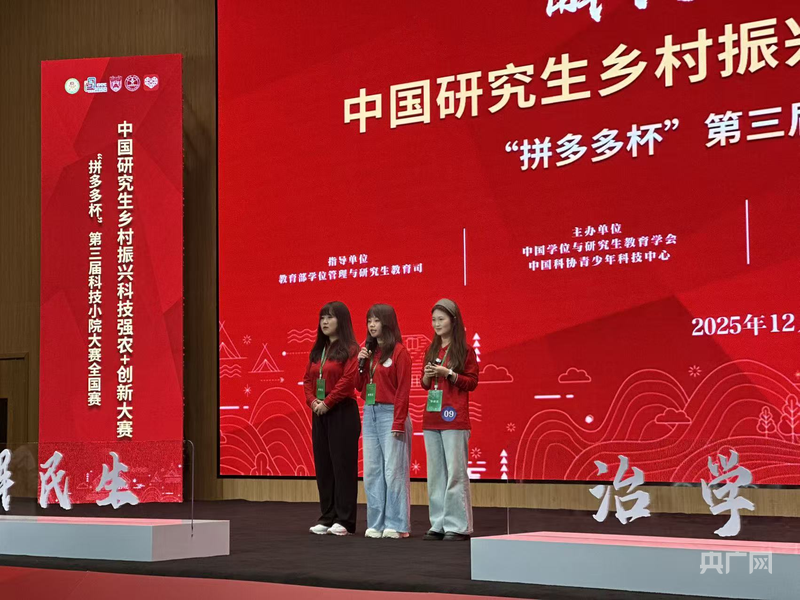 中青报·中青网记者任明超 "作为一名即将毕业的研究生,我把在科技小院两年来的感悟,写进《科技小院:面包的故事》这本小 书,记录自己投身'三农'的心路历程。"2025年12月底,在海南省三亚市举办的中国研究生乡村振兴科 技强农+创新大赛"拼多多杯"第三届科技小院大赛总决赛上,中国农业大学河北省曲周县刘庄科技小院 团队获得一等奖,小院核心成员、研三女生杨欣向与会代表分享了通过科技小院与"三农"结缘的故事。 本次总决赛在海南省三亚市崖州湾科技城创新研学谷举办,汇聚了相关领域院士、院校负责人、海南省 科协负责人以及参赛团队数百名代表。中国学位与研究生教育学会是本次大赛主办单位之一,据该学会 副会长丁雪梅介绍,大赛每两年举办一次,今年共吸引全国247支团队参赛,22支优秀团队脱颖而出, 晋级全国总决赛。大赛创新引入"院士飞行团"实地考察机制,提升了赛事的高度与深度,参赛的研究生 平均驻扎科技小院时间超过8个月。 经过两天的激烈角逐,河南新乡玉米科技小院、河北曲周刘庄科技小院、辽宁鲅鱼圈葡萄科技小院、四 川峨边笋用竹科技小院、陕西永寿小麦科技小院和云南洱海水稻科技小院获得本届大赛一等奖。 总决赛现 场设置科技小院集中展示 ...