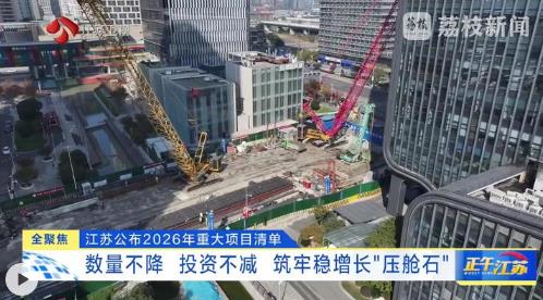 江苏公布2026年重大项目清单:数量不降 投资不减 筑牢稳增长“压舱石”